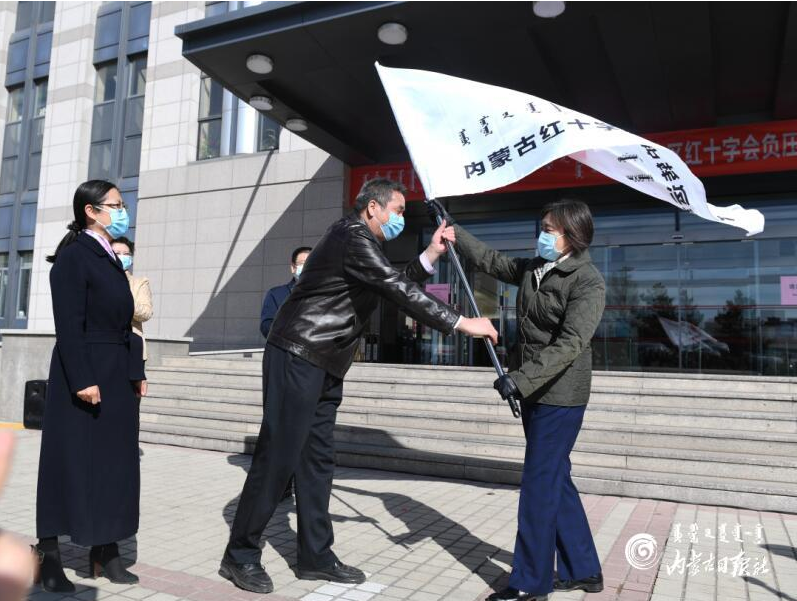 3月21日上午,自治区红十字会负压救护车及配套医疗设备捐赠活动在呼和浩特举行。自治区党委副书记、自治区主席、自治区红十字会名誉会长布小林在活动现场向新组建的内蒙古红十字救护转运车队授旗。内蒙古日报社融媒体记者韩卿立摄
