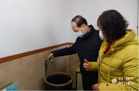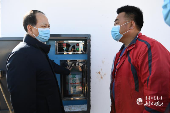 石泰峰十分关心群众的饮水安全,每到一村、每进一户都察看用水情况,询问水质达不达标、净水器好不好用、供水量能不能保证。在大黑河乡四十顷地村张占娃家,得知吃水要去集中供水点划卡打水,石泰峰随后就来到那里查看了解净水设备运行和水质、水量、水价等情况。他强调,饮水安全事关群众身体健康,要加强对群众的宣传引导,把每个环节的工作都做扎实、抓到位,确保群众饮水安全有保障、可持续。