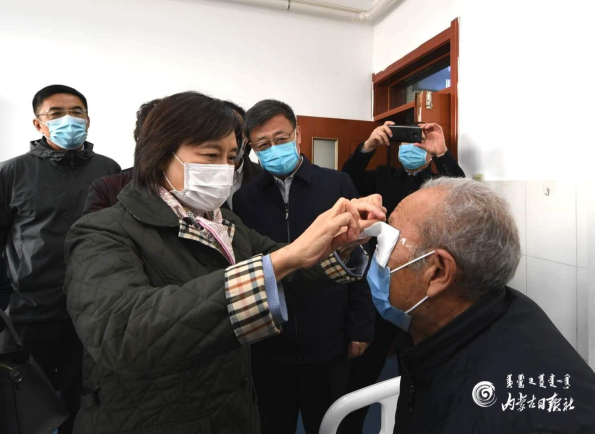 4月8日,2020年全区“光明行”社会公益活动在通辽市科左中旗启动。自治区主席、自治区红十字会名誉会长、全区“光明行”社会公益活动组委会主任委员布小林出席启动仪式,并为术后白内障患者取下纱布。内蒙古日报社融媒体记者 韩卿立摄