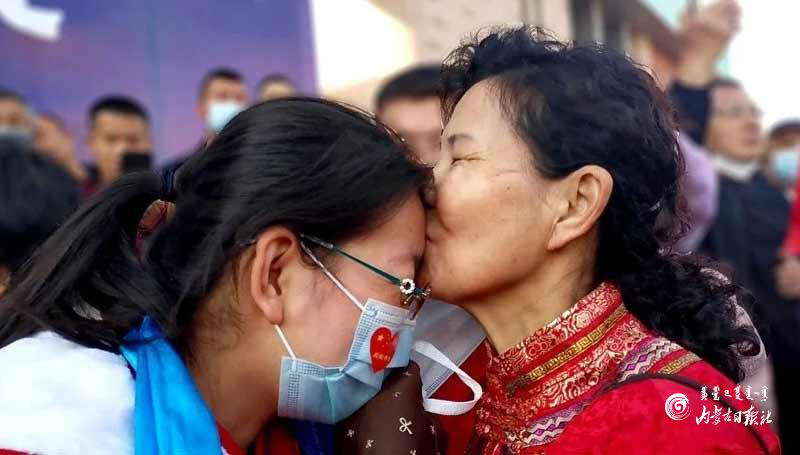 记者采访那仁格日勒,“是否赴武汉临行前也喝过爸妈的一杯送行酒?”,她回答:“没有,那时太匆忙,顾不上。上午12点接到通知,下午2点50分就集合出发,还没来得及告诉姐姐。”,她说,尽管在之前就自愿报过名了,但没想到出发竟是那样突然。