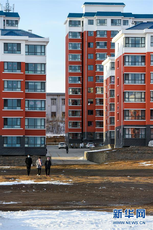 居民在内蒙古乌兰察布市卓资县易地搬迁房福安小区内散步(2020年3月26日摄)。新华社记者 连振 摄