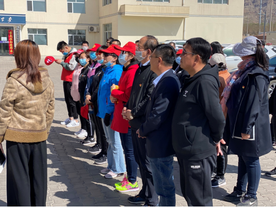 下午3时,共80余名干部职工组成的植树“大军”浩浩荡荡开赴植树现场。