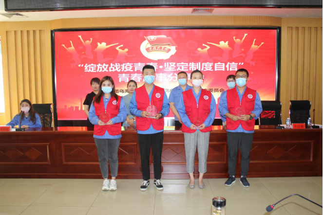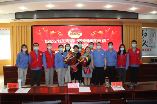 分享会上同时表彰了供水公司“青年突击队”在疫情期间中表现突出的四位“最美青年志愿者”,抗疫英雄和公司领导为他们送上纪念奖杯,并聆听了他们在疫情站岗执勤期间发生的感人事迹。