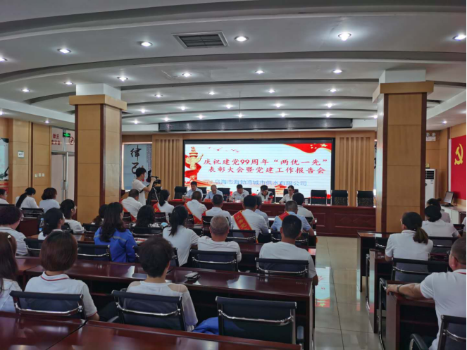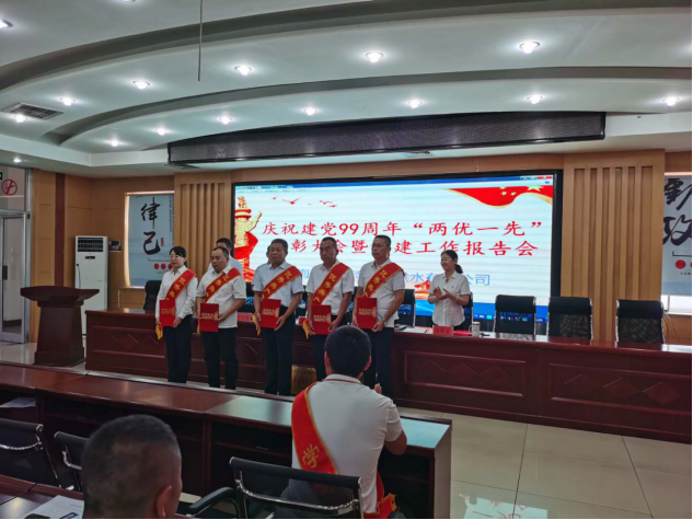 为深入贯彻落实中央和集团公司党组对全面从严治党、加强国企党建系列新要求新部署,坚持以党的政治建设为统领,巩固“不忘初心、牢记使命”主题教育成果,全面加强公司党建工作,进一步推进优势转化,凝聚正劲干劲,推动公司全面可持续发展。7月1日,乌海市海勃湾城市供水有限公司召开庆祝建党99周年“两优一先”表彰大会暨党建工作报告会。