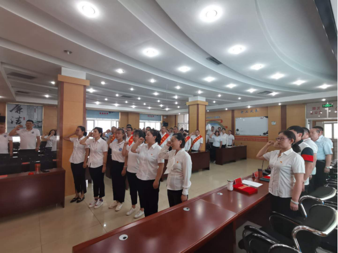 大会在庄严的国歌中拉开帷幕,面对鲜红的党旗,全体参会党员和5名预备党员在党旗前全体列队,面向党旗,举起右拳,庄严宣誓:“我志愿加入中国共产党,拥护党的纲领,遵守党的章程,履行党员义务,执行党的决定,严守党的纪律,保守党的秘密,对党忠诚,积极工作,为共产主义奋斗终身,随时准备为党和人民牺牲一切,永不叛党。”重温入党誓词,让全体党员再一次接收党性的洗礼、理想信念再教育,追寻共产党人初心之路,牢记共产党人使命担当,进一步坚定了理想信念、锤炼党性作风。