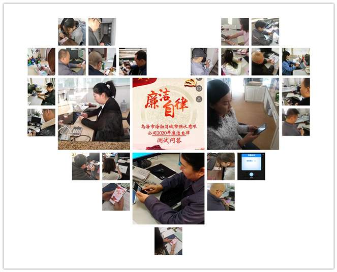 城市供水公司党委为顺应党风廉政建设和反腐败斗争发展的新形势,创新地开展党风廉政教育工作,持续在教育形式上狠下功夫。11月5日至11月6日,供水公司开展了第四季度廉洁自律测试问答活动。