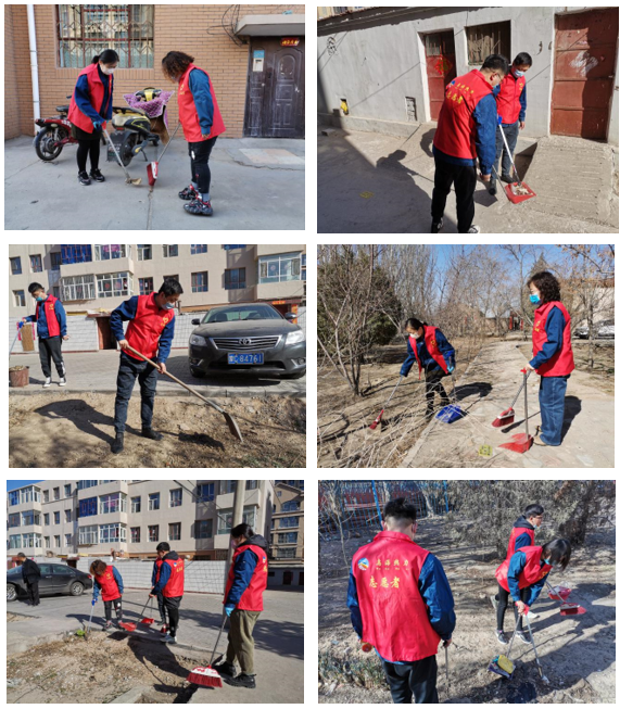 在包联共建农场楼,志愿者们按照社区人员的安排,迅速开展环境卫生整治。大家手持扫把、簸箕等工具穿梭在小区里,对小区院落、绿化带进行了卫生打扫,对楼体墙壁的小广告进行了清理,并向过往居民积极宣传疫情防控知识,劝导大家文明出行和保护公共卫生。