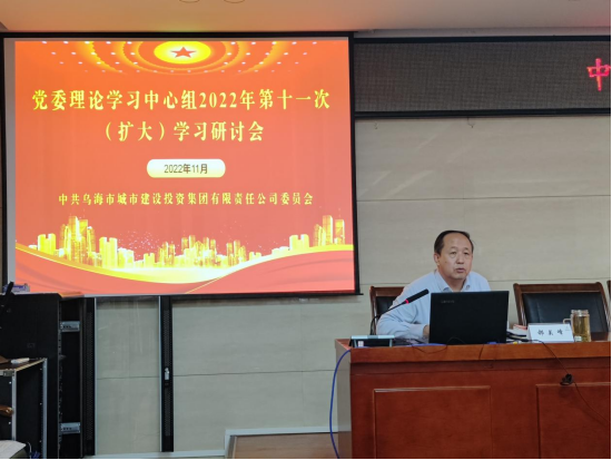 11月23日,市城投集团公司党委召开理论学习中心组2022年第十一次(扩大)学习研讨会,专题学习党的二十大精神,市城投集团公司党委书记郝关峰主持会议并讲授专题党课,集团公司领导班子成员分别发言。各子公司主要负责人、分管党建工作班子成员,机关环节干部列席会议。