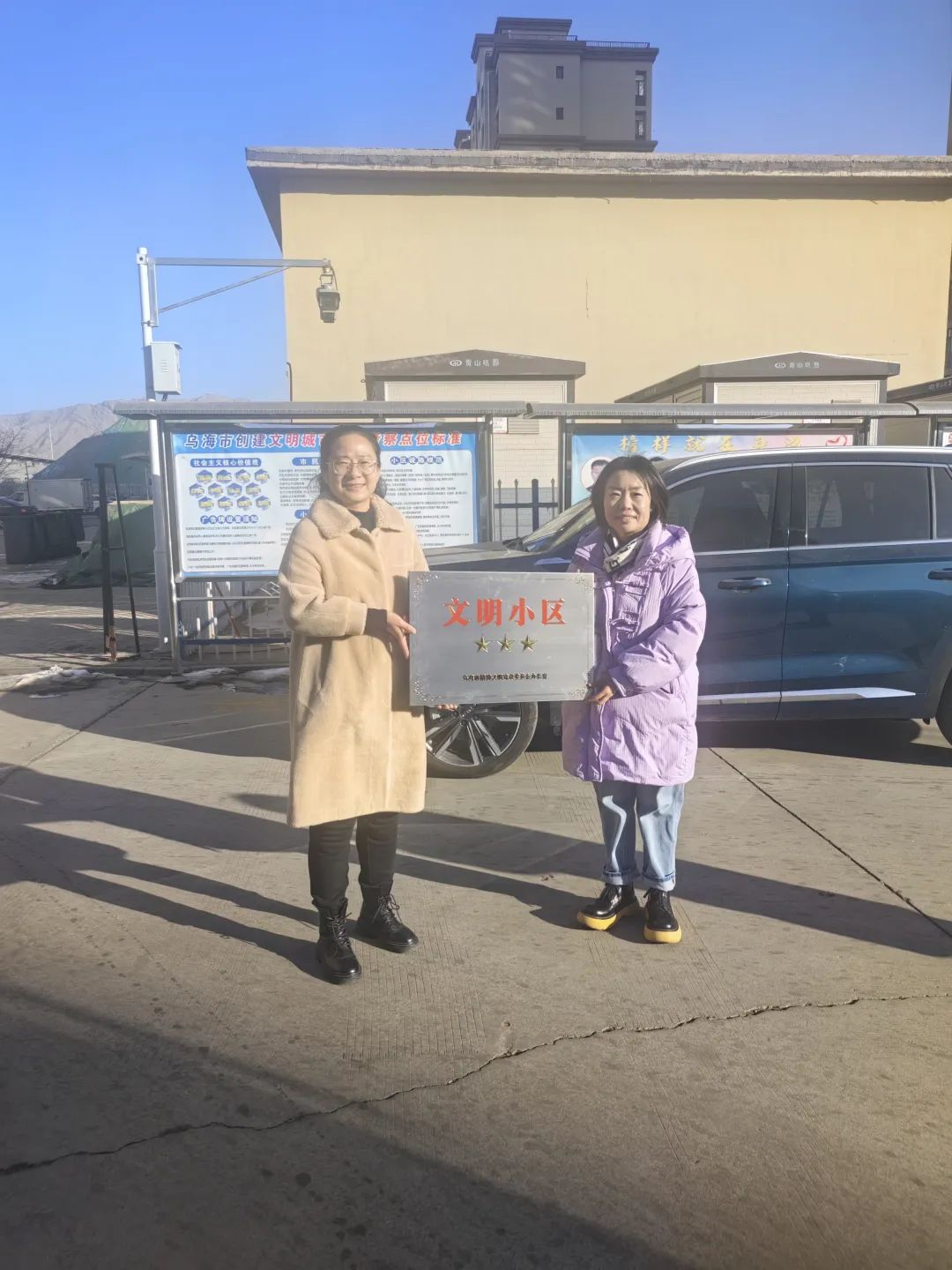 2024年1月3日下午,海馨社区为乌海市滨河房地产开发有限责任公司物业服务中心颁发2023年度文明小区牌匾。文明小区评选是乌海市精神文明建设委员会为深入推进全国文明城市创建,增强基层治理能力和效能,提升城市文明程度和城市治理现代化水平的一项重要活动。