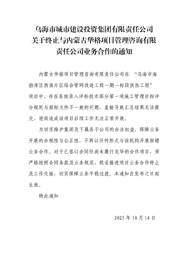 - 2025-07-21乌海市城市建设投资集团有限责任公司五虎山井田南部采空区灾害综合治理项目公开招聘项目负责人延长报名时间的通知