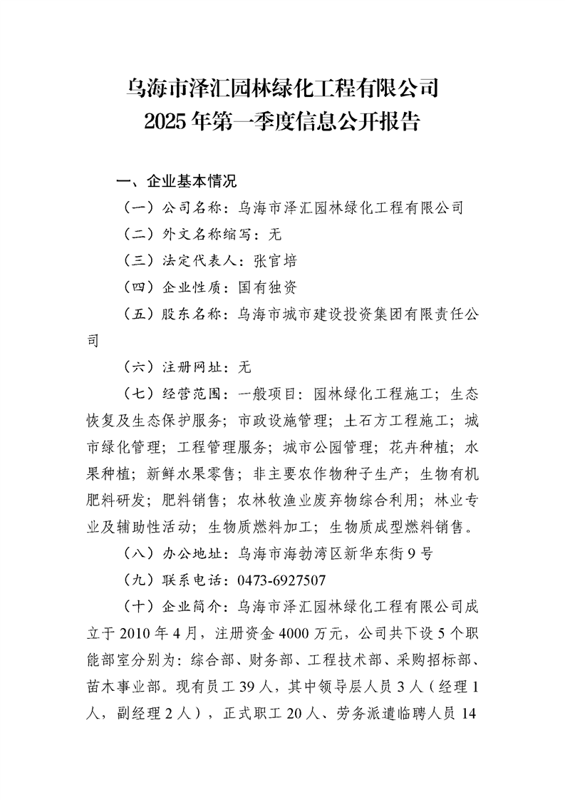 - 2025-07-28乌海市泽汇园林绿化工程有限公司2025年第二季度信息公开