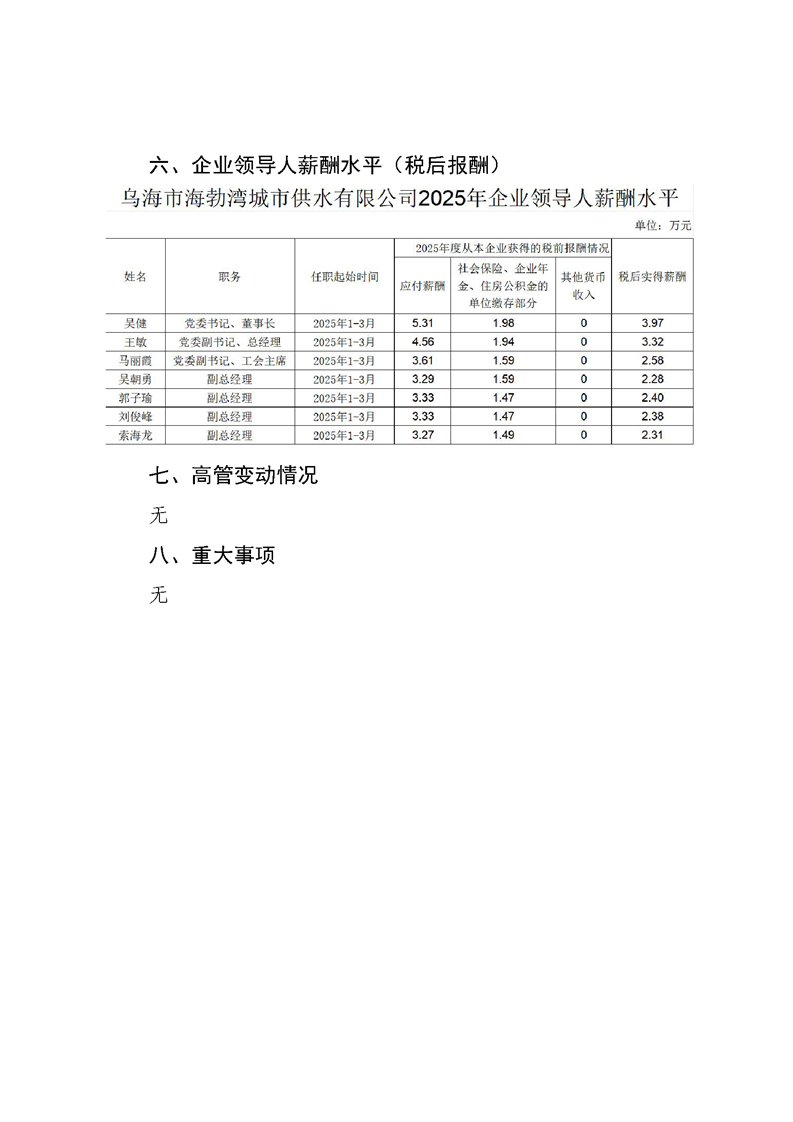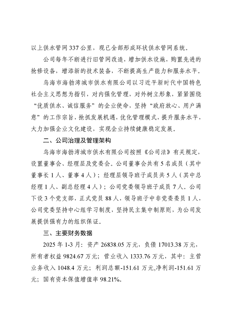 - 2025-07-28乌海市海勃湾城市供水有限公司2025年第二季度信息公开