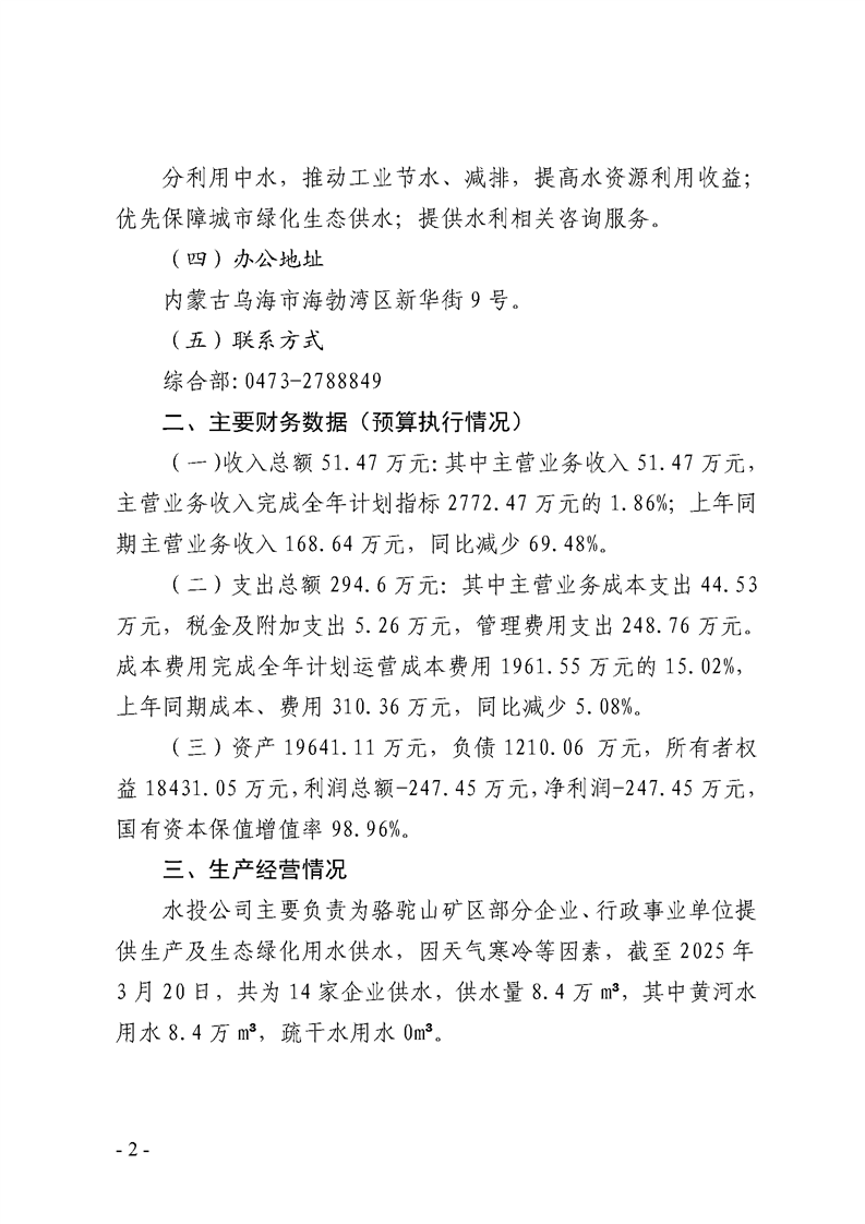 - 2025-07-28乌海市水务投资有限责任公司2025年第二季度信息公开