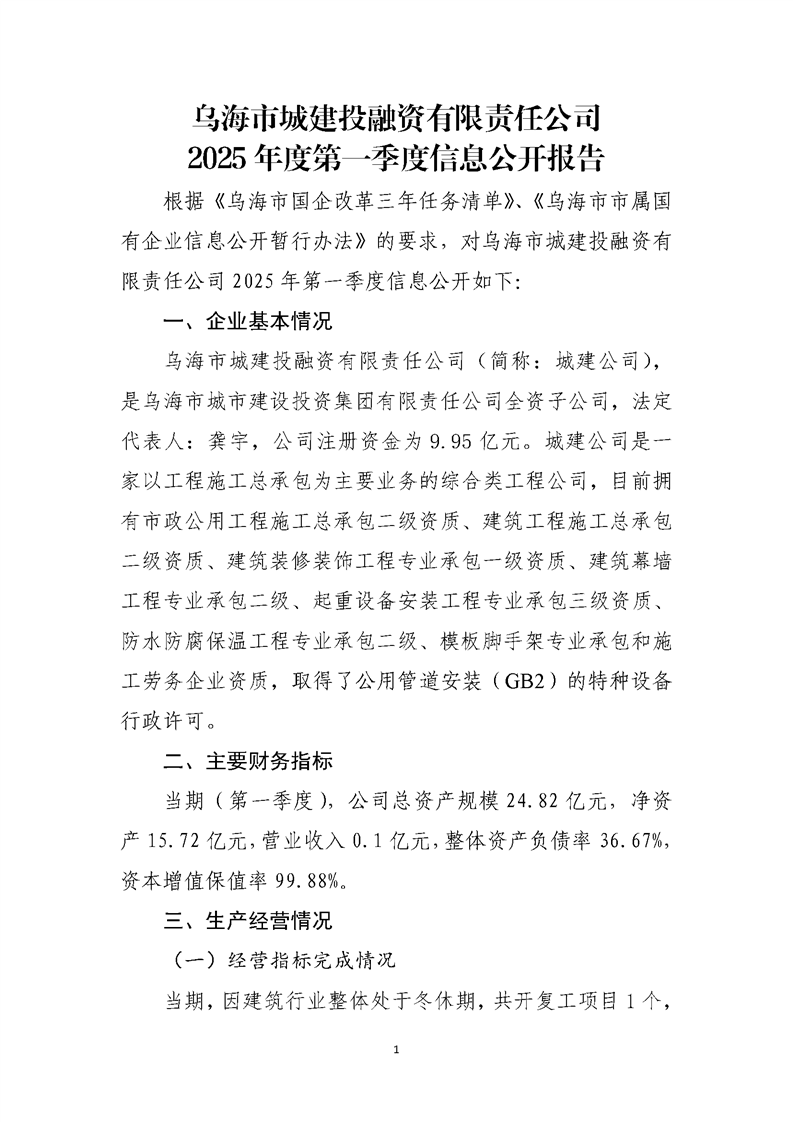- 2025-07-28乌海市城建投融资有限责任公司2025年度第二季度信息公开