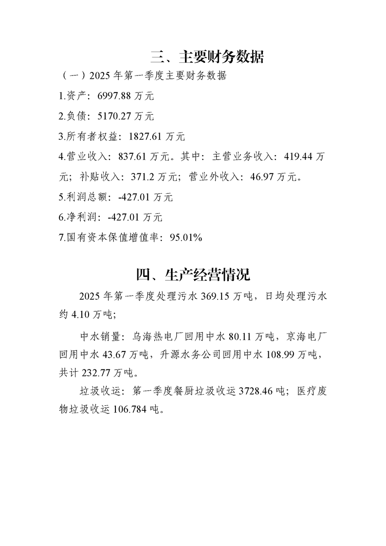 - 2025-07-28乌海市污水处理有限责任公司2025年第二季度信息公开