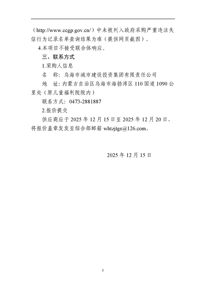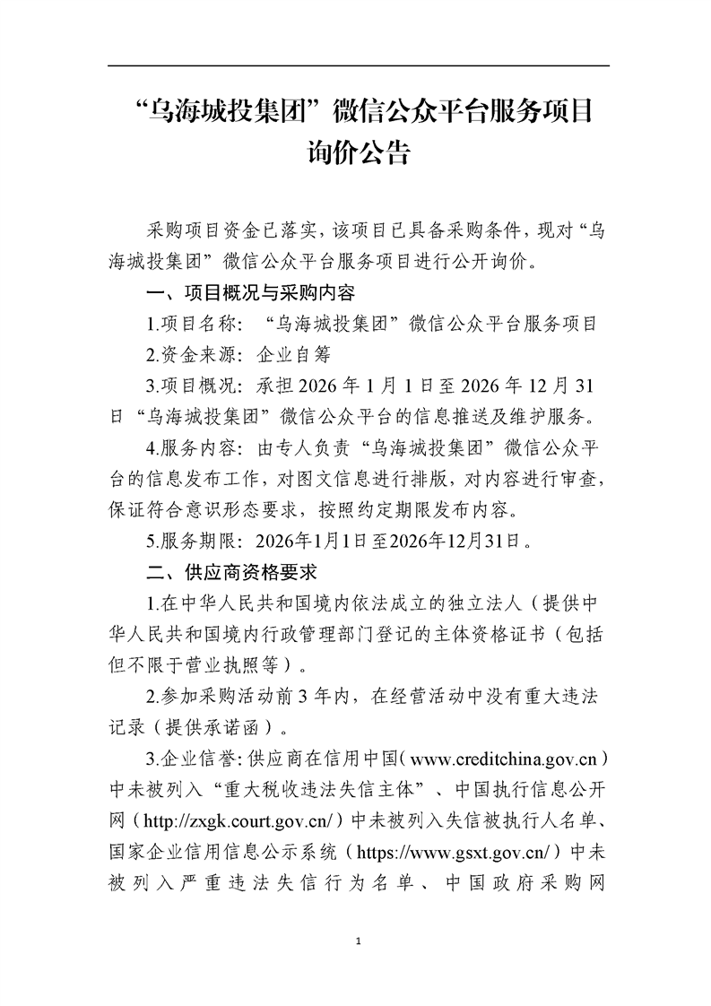 - 2025-09-17乌海市滨河城市运营服务有限责任公司广告设计、制作、安装服务商采购询价文件