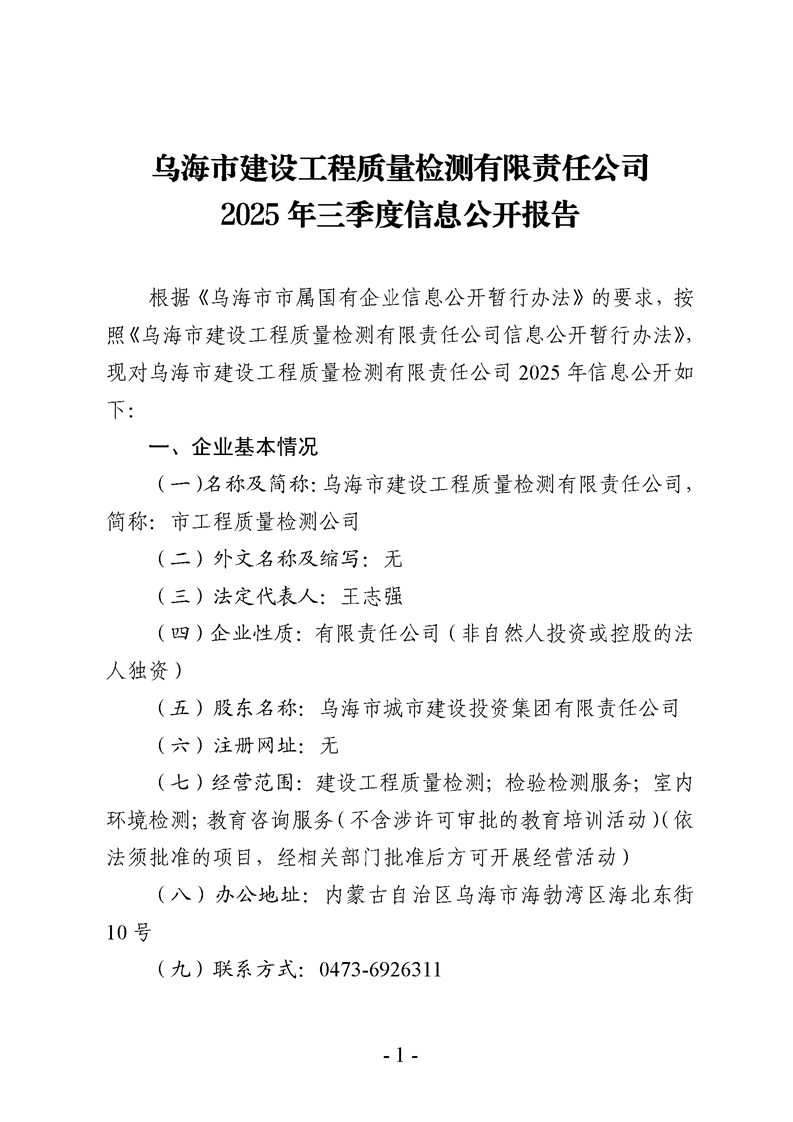 - 2025-07-28乌海市建设工程质量检测有限责任公司2025年二季度信息公开