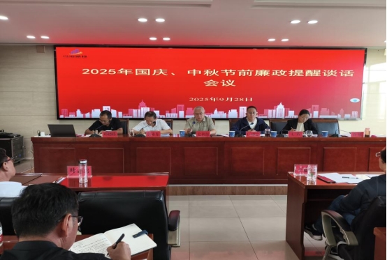 2025年国庆、中秋假期将至,按照乌海市纪委监委及乌海市国有资产监督管理委员会工作提示要求,9月28日下午,市城投集团公司召开2025年国庆、中秋节前廉政提醒谈话会议。集团公司党委副书记、总经理巨德富主持会议,集团公司领导班子成员、工会主席、县处级干部、各部室正副职、各子公司领导班子成员、重点工程项目负责人等参加会议。