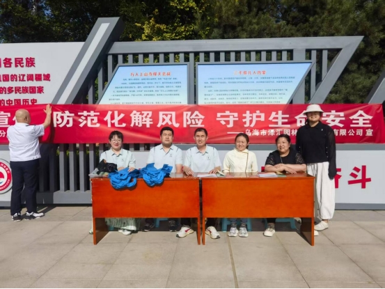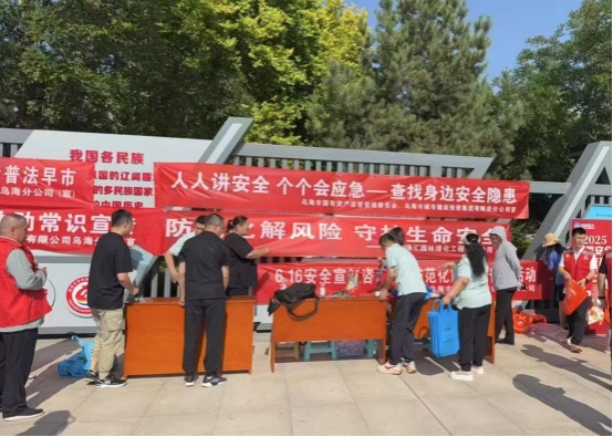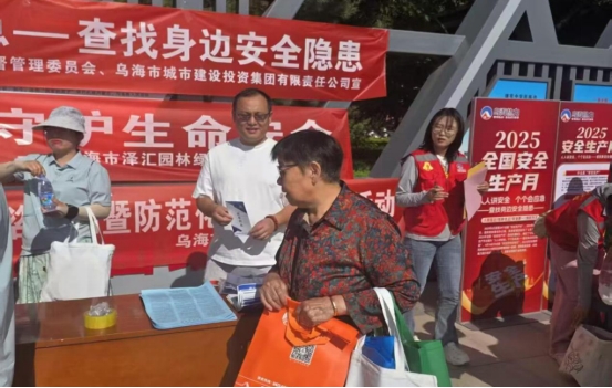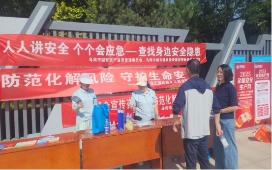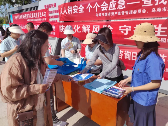 乌海市水务投资公司:积极响应“人人讲安全、个个会应急——查找身边安全隐患”安全生产月主题,通过悬挂活动主题横幅、摆放安全宣传展板、现场派发安全生产宣传资料、设立宣传咨询台等方式,向群众普及安全生产、消防等安全知识。