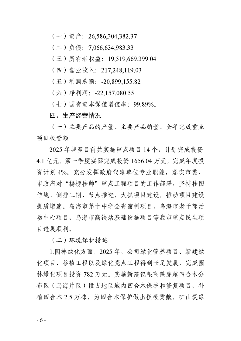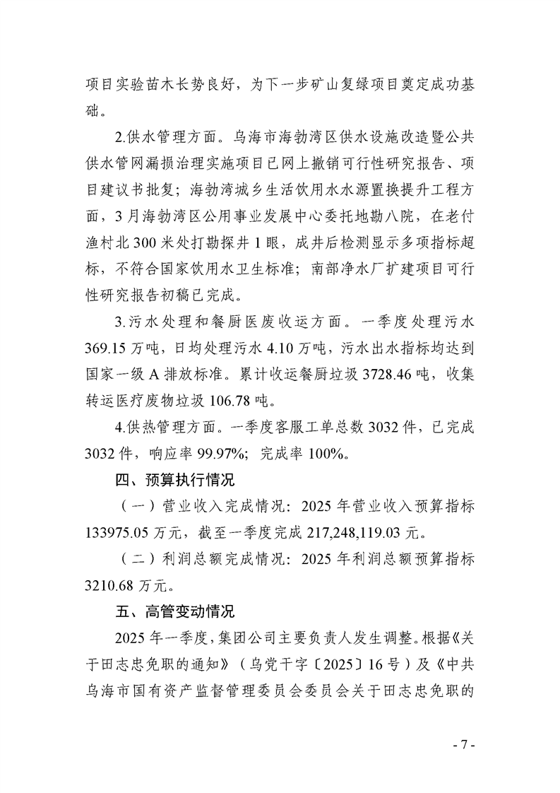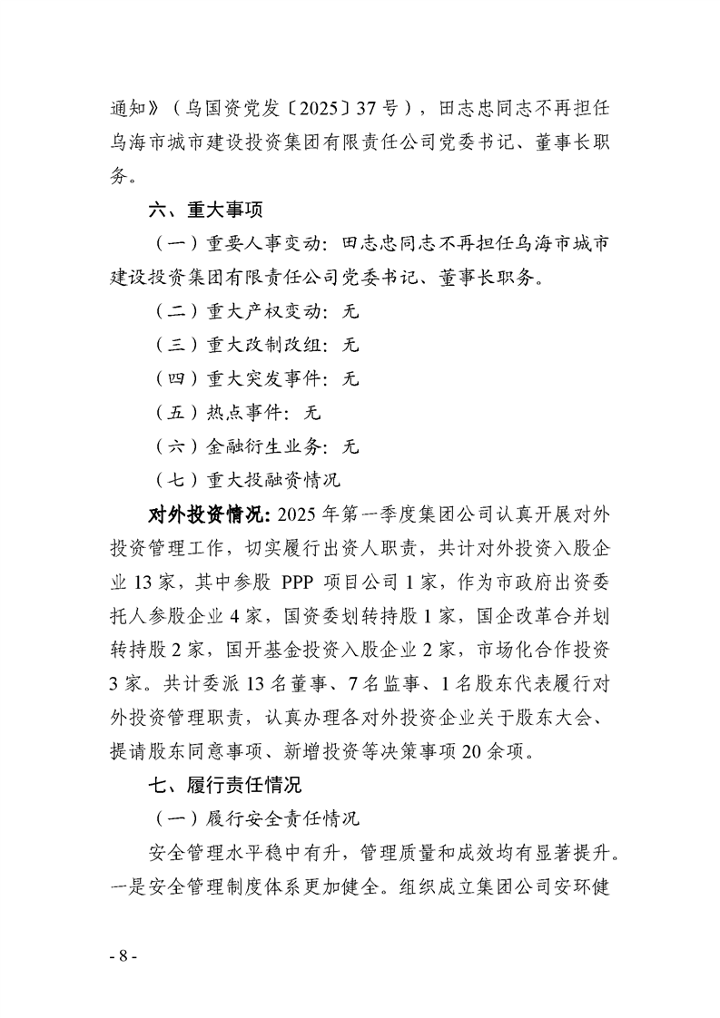 - 2025-07-25乌海市城市建设投资集团有限责任公司 2025年度第二季度信息公开报告