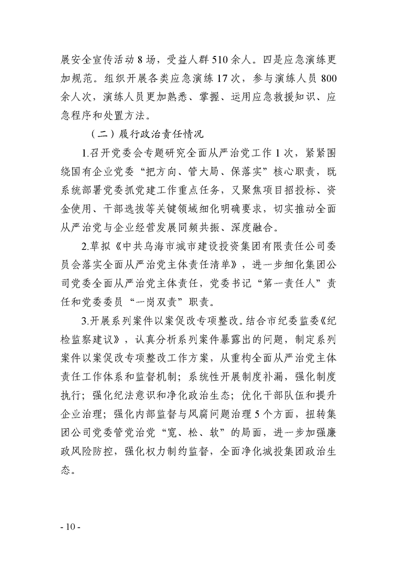 - 2025-04-10乌海市城市建设投资集团有限责任公司2024年度信息公开报告