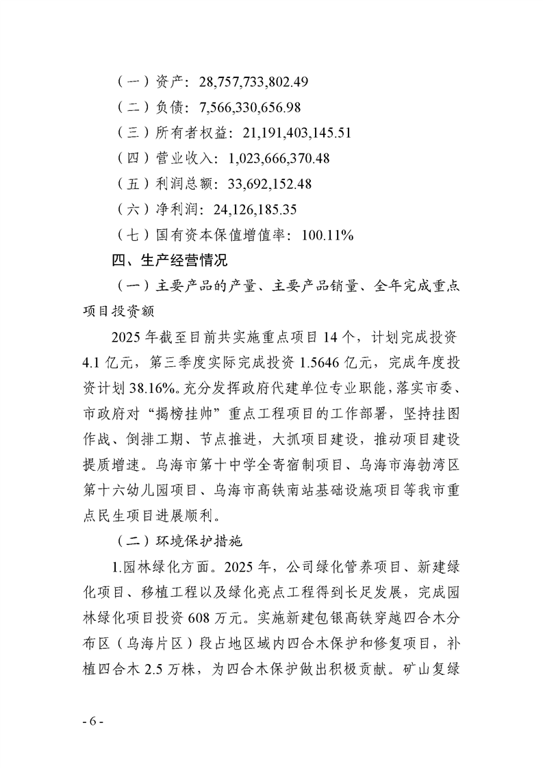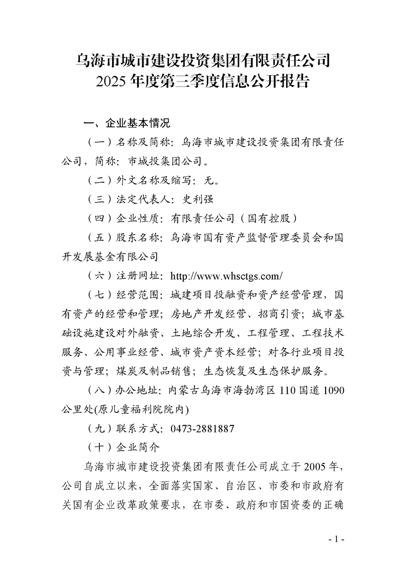 - 2025-04-23乌海市城市建设投资集团有限责任公司 2025年度第一季度信息公开报告