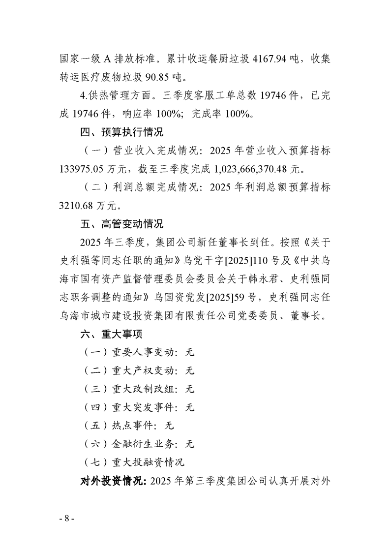 - 2025-07-25乌海市城市建设投资集团有限责任公司 2025年度第二季度信息公开报告