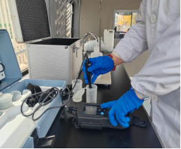 演练现场,水质检测车第一时间奔赴“事故”现场。检测车配备了先进的检测设备,能在短时间内对多种水质指标进行初步分析,为后续精准检测提供方向。抵达现场后,检测人员迅速行动,他们手持便携仪器对水源水、出厂水和管网水进行现场检验。这些便携仪器操作简便、检测速度快,能快速检测出pH值、浑浊度、色度、总硬度等关键指标,初步判断水质是否存在异常。检测人员严格按照规范流程操作,争分夺秒地获取检测数据,不放过任何一处潜在隐患。