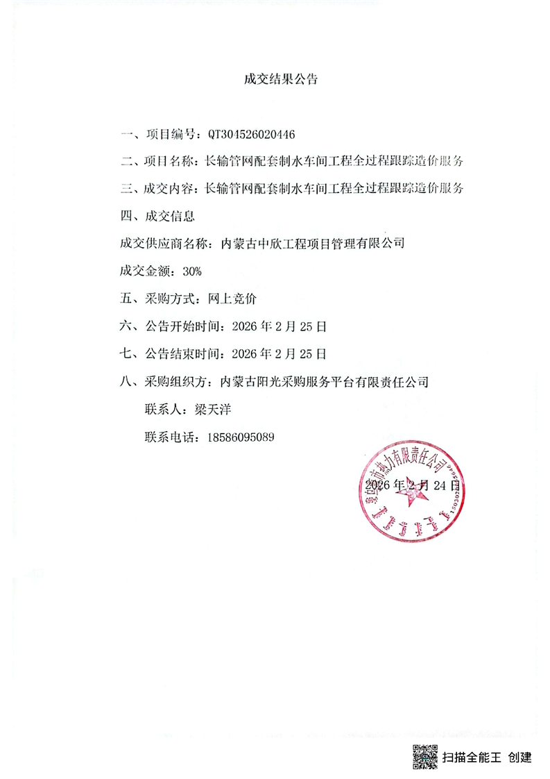 - 2026-03-13长输管网配套制水车间工程(工程质检服务)【招标计划】
