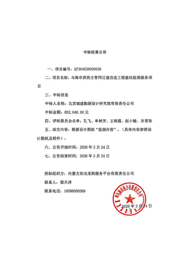 - 2026-04-01乌海市热力有限责任公司客户服务中心购买工作服项目招标代理服务询价公告
