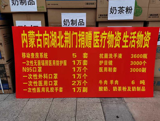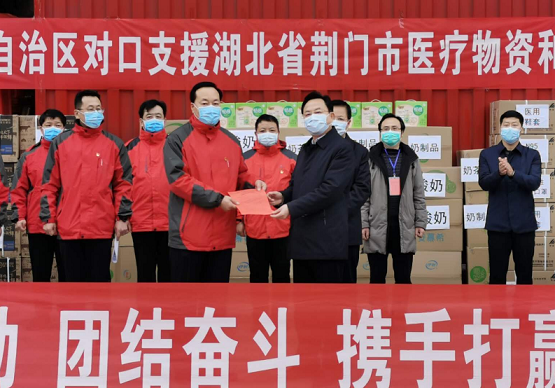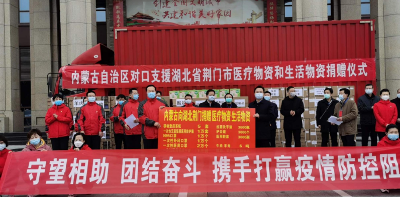 2月28日下午3时,内蒙古自治区对口支援湖北省荆门市医疗物资和生活物资捐赠仪式在荆门市举行。