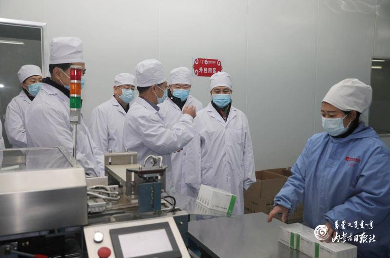 3月1日,自治区党委副书记、自治区主席布小林到内蒙古奥特奇蒙药公司调研复工复产情况。内蒙古日报社融媒体记者 高敏娜 摄