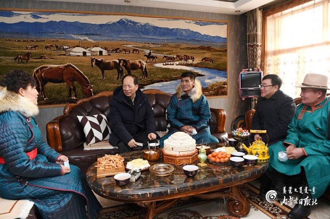 3月3日,自治区党委书记、人大常委会主任石泰峰来到锡林郭勒盟宝格达音高勒苏木查干德日苏嘎查党员中心户那顺巴图家,了解牧区基层党组织建设及带领周边牧民增收情况。内蒙古日报社融媒体记者 袁永红 摄