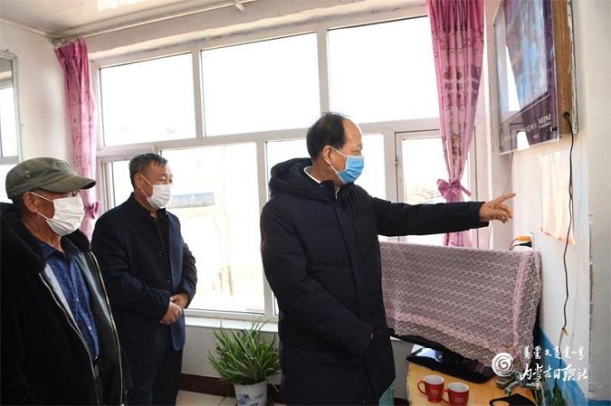 3月3日,自治区党委书记、人大常委会主任石泰峰来到锡林郭勒盟宝昌镇边墙村,走访已脱贫建档立卡贫困户胡跃兵家,了解生产生活情况。内蒙古日报社融媒体记者袁永红 摄