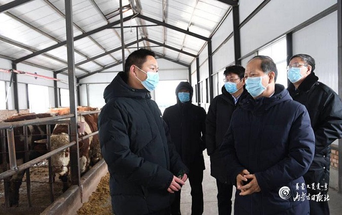 3月3日,自治区党委书记、人大常委会主任石泰峰来到锡林郭勒盟现代畜牧业产业园,调研京蒙扶贫协作项目建设及企业运行情况。内蒙古日报社融媒体记者 袁永红 摄