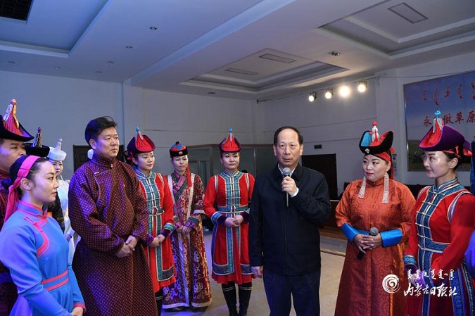 2020年3月2日,自治区党委书记、人大常委会主任石泰峰深入锡林郭勒盟苏尼特右旗乌兰牧骑,与队员们交流并鼓励队员弘扬新时代乌兰牧骑精神,创作文艺精品献给基层农牧民。内蒙古日报社融媒体记者 袁永红 摄