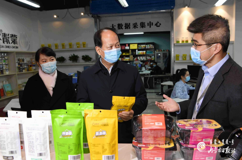 3月12日,自治区党委书记、人大常委会主任石泰峰在呼和浩特市赛罕区金桥电子商务产业园,了解入驻企业经营情况。内蒙古日报社融媒体记者 袁永红 摄