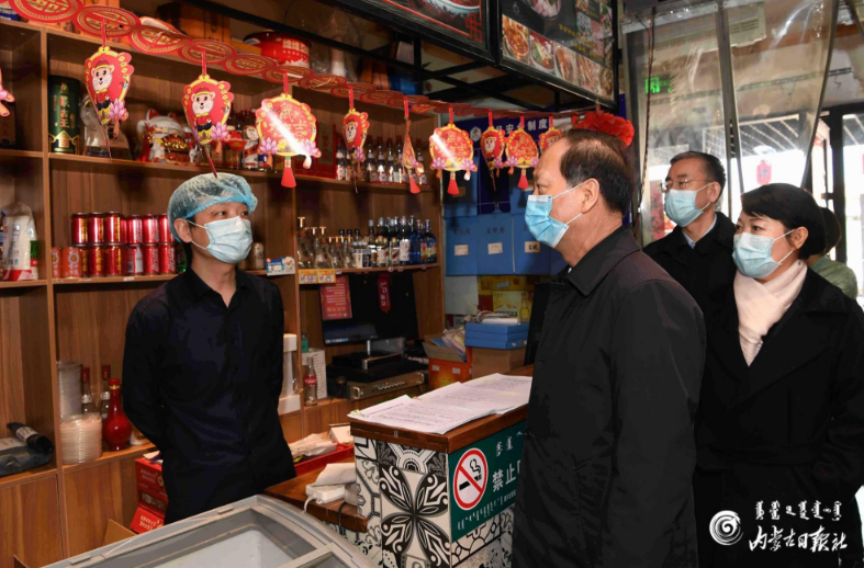 3月12日,自治区党委书记、人大常委会主任石泰峰随机走进一家临街餐馆,检查防疫措施,询问员工返岗和营业情况。 内蒙古日报社融媒体记者 袁永红 摄