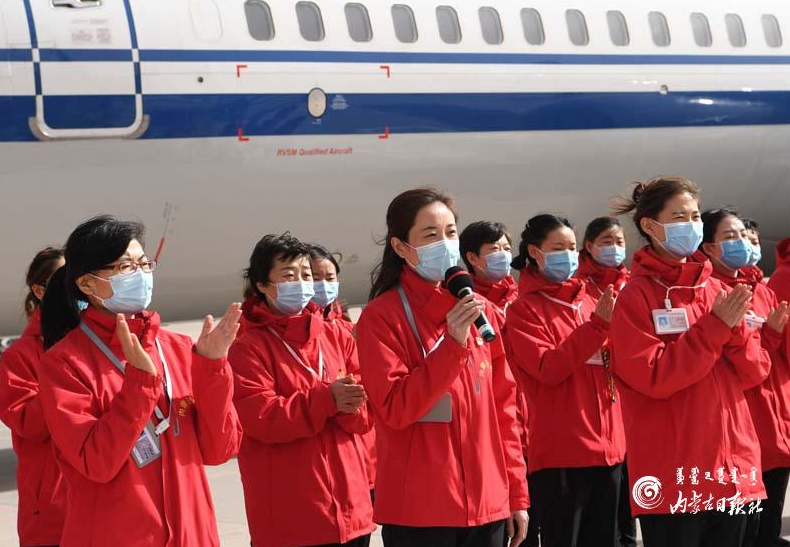 疫情发生后,内蒙古847名白衣战士请缨出征,驰援湖北武汉、荆门、随州,抗击疫情。首批回家的是内蒙古援鄂第二医疗队,也是我区驰援医疗队伍中唯一一支护理队,驰援武汉市的江汉方舱医院,连续奋战44天,累计护理患者506人,采集咽试子1161人次,顺利完成相关医疗工作,实现“患者零死亡、出院零返舱、医护零感染”。